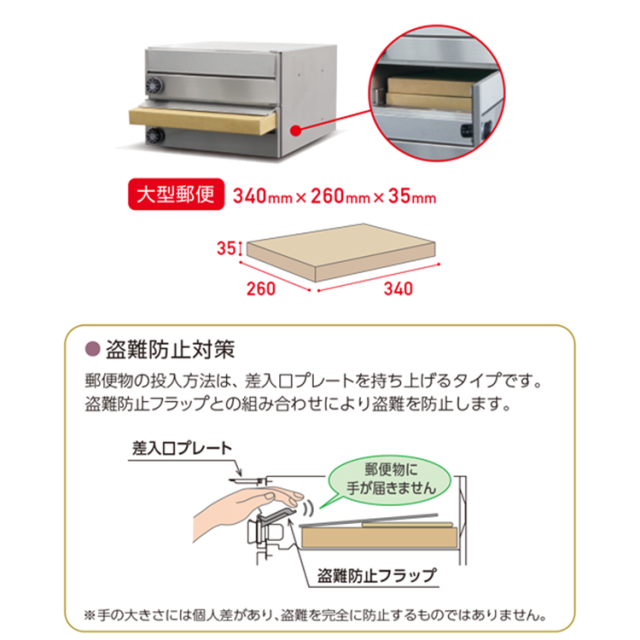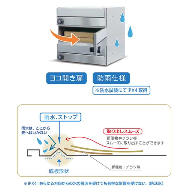 3段(3BOX)タイプです。扉はステンレスヘアライン仕上です。大型郵便が納まる省スペースタイプです。